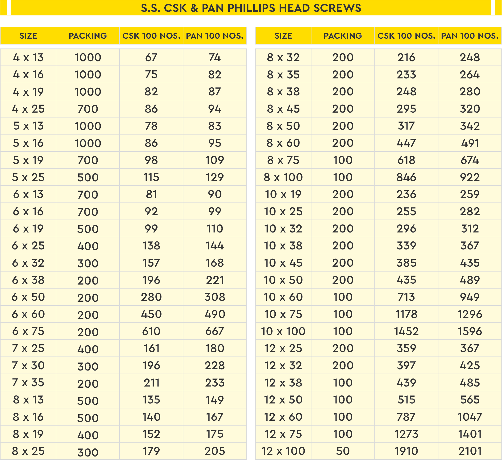 HomeS.S. CSK & PAN PHILLIPS HEAD SCREWS